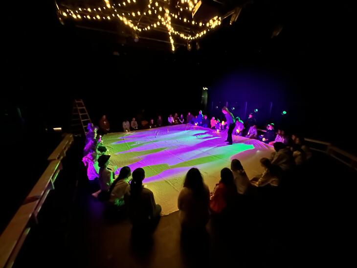 Inn i forestillinga Vi starter i et tomt rom og skaper teater sammen. Her er alle “backstage” og ser hvordan magien blir til. Inn i forestillinga! er en symbiose av en teaterworkshop, en interaktiv forestilling og et teaterlaboratorium ledet av to utøvere der elevene blir med inn i forestillinga og får prøve seg som skuespillere, regissører og musikere.