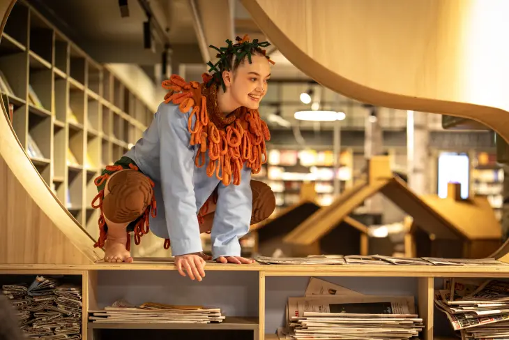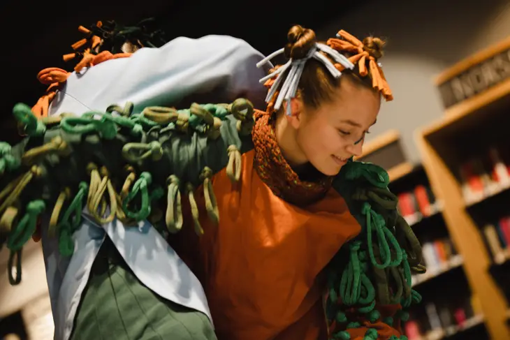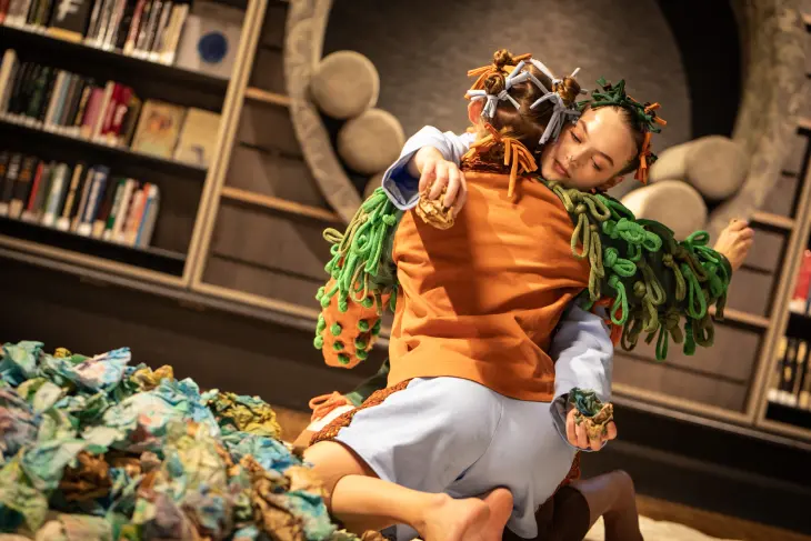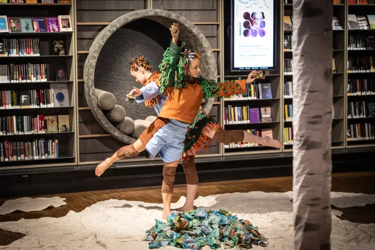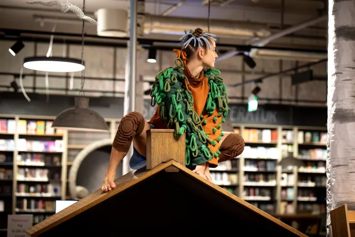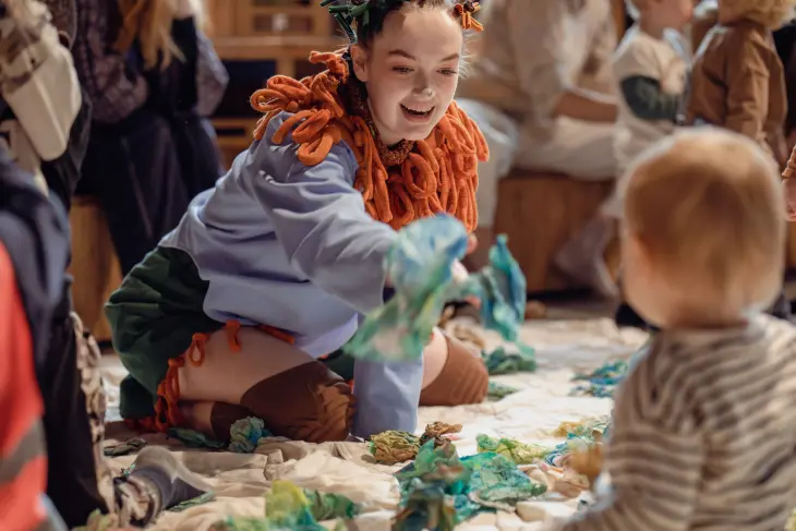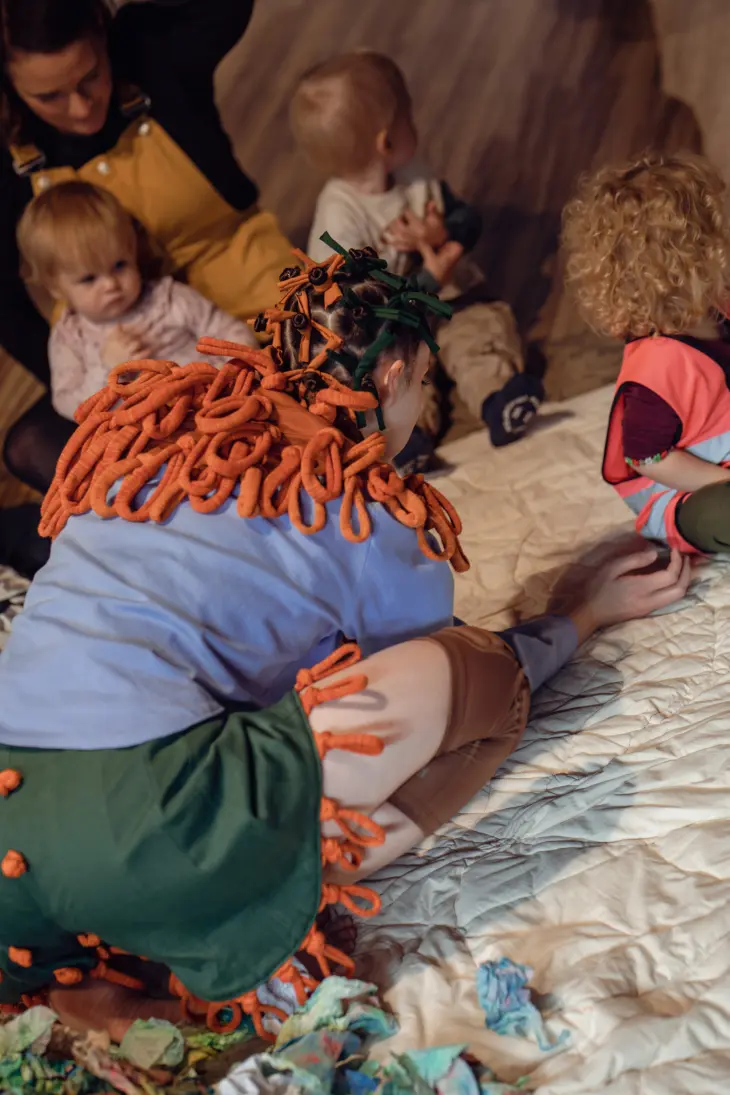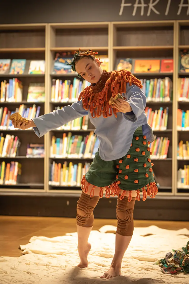 En stedsspesifikk og sanselig forestilling for bibliotekrommet og de minste barna.