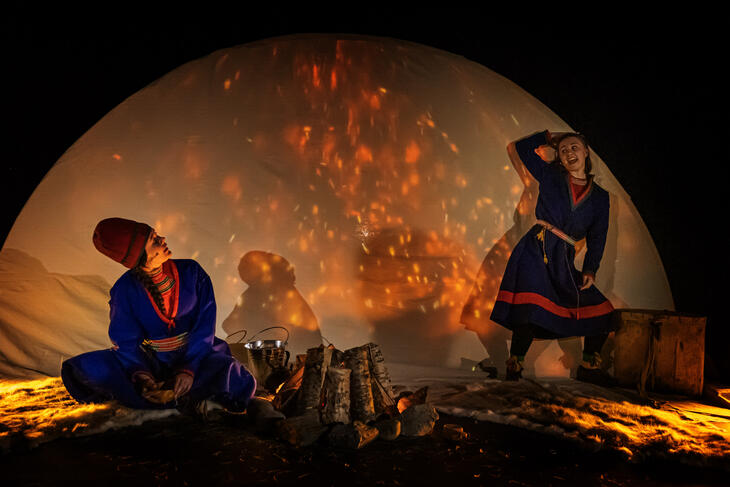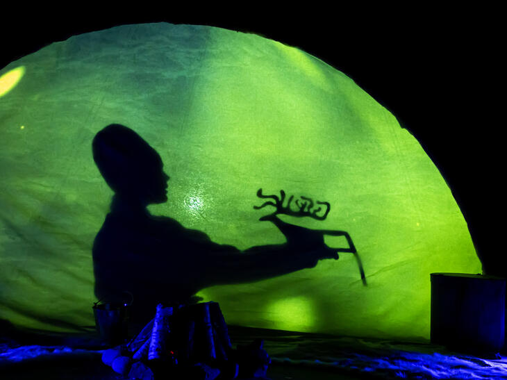 Vi leker i det visuelle med å kombinere moderne projeksjon med godt gammeldags skyggeteater. Vi viser frem det vanlige livet i en gamme fra 1900-tallet før vi omskaper gammen og forsvinner inn i verdenene som finnes i gammel samisk tro. Med musikken som buldrer i gulvet, vakkert lys som tar med oss inn i de ulike verdenene vil vi ta med publikum på en reise de sent vil glemme.